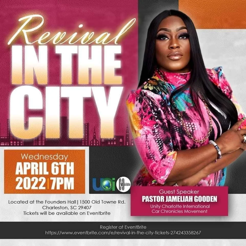 Revival In The City Wednesday, April 6, 2022 7:00 PM 9:00 PM Founders Hall 1500 Old Towne Road Charleston, SC, 29407 (map) Google Calendar ICS